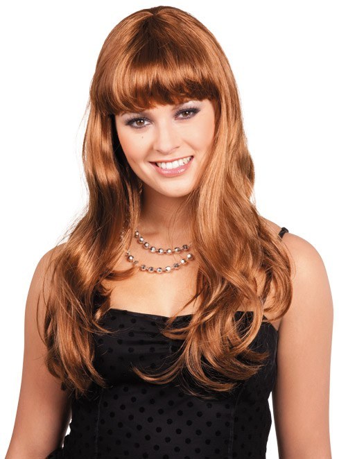 The long Brown Chique Wig is lustrous and elegant. The wig has a fringe falling above the eyes and soft curls that make your look all the more classy.