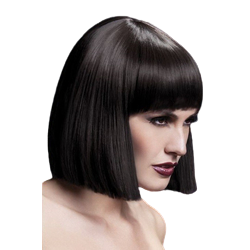 Deluxe Fever Lola 12" Heat Resistant Wig in brown with Short Blunt Cut & Fringe, Skin Parting and Fully Adjustable Professional Wig Cap.