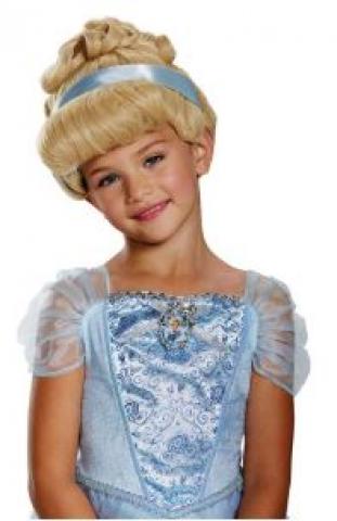 Kids Cinderella Wig Set comes with a blonde wig, blue sparkling mirror,brush and comb with pretty Cinderella picture on each, a beaded necklace with a blue heart shaped jewel and matching ring and a heart shaped pink glitter make up compact.