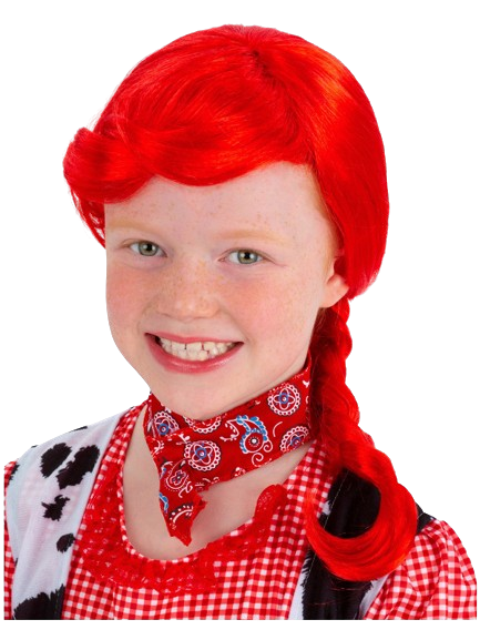 This red braided wig is the perfect finishing touch for any cowgirl costume.