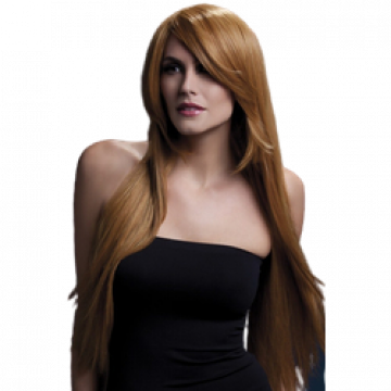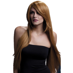 Long auburn straight Amber deluxe wig with side fringe and faux skin parting. The wig also features an attached wig cap to hold the wig securely into place. The wig is styleable and heat resistant up to 120 degrees Celsius.