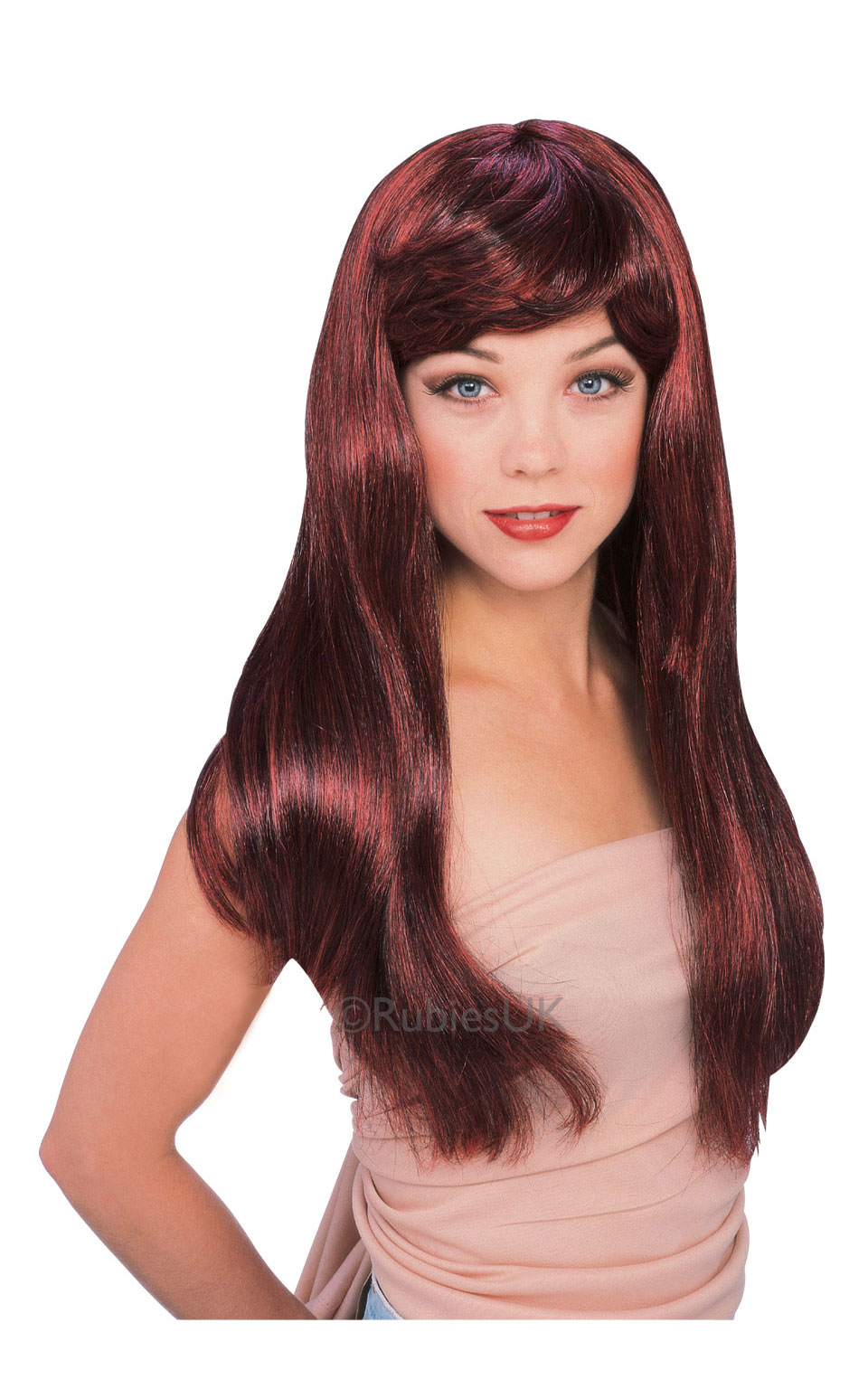- Long, straight auburn hair wig made from polypropylene hair strands