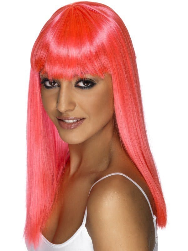 Glamourama Wig Neon Pink with fringe.