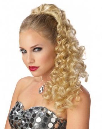 The hairpiece features soft curls and two attached hairpiece combs to hold the headpiece securely onto your head.