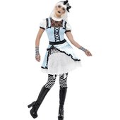 Long black and white Deluxe Gothic Alice Wig with a black headband. The wig also features a wig cap to hold the wig securely onto your head and to stop any stray hairs that might give away the look.