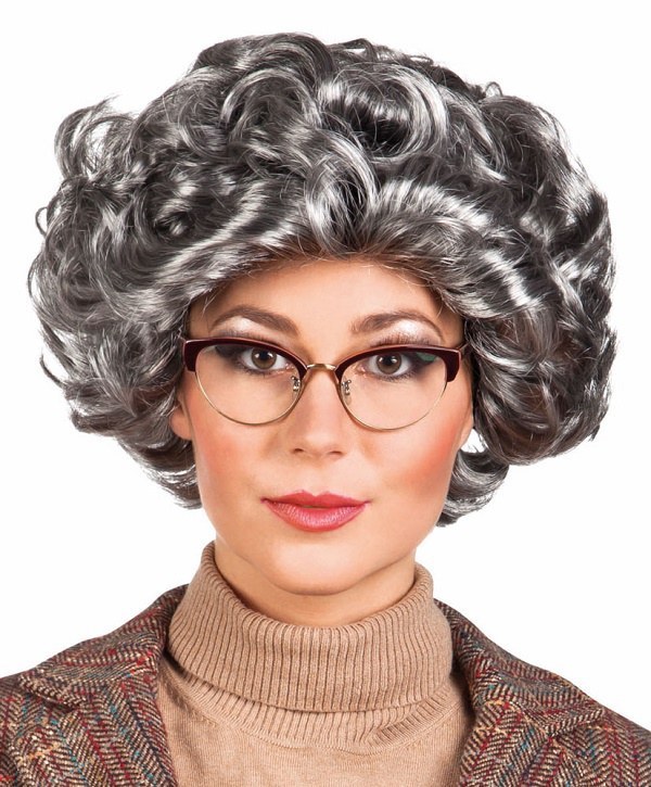 Short grey curly Elizabeth Wig. Wig also features an attached wig cap to hold the wig securely onto your head and stop any stray hairs that might give away the look.
