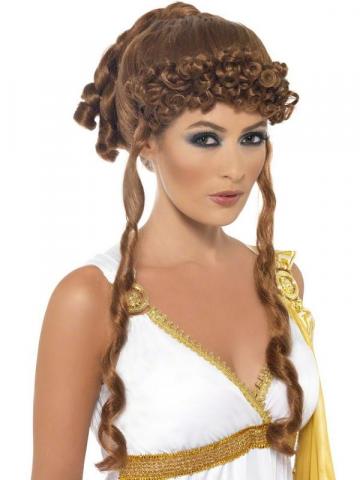 Dress up like the Greek legend Helen of troy, the daughter of Zeus, with this brown wig which features curls and long drapes. One size fits most ladies.