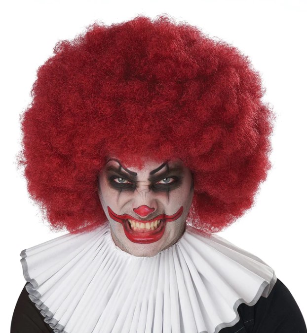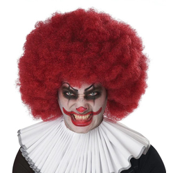 A dangerously off color comedy style. This Jumbo Afro Wig is in a burgundy red color.