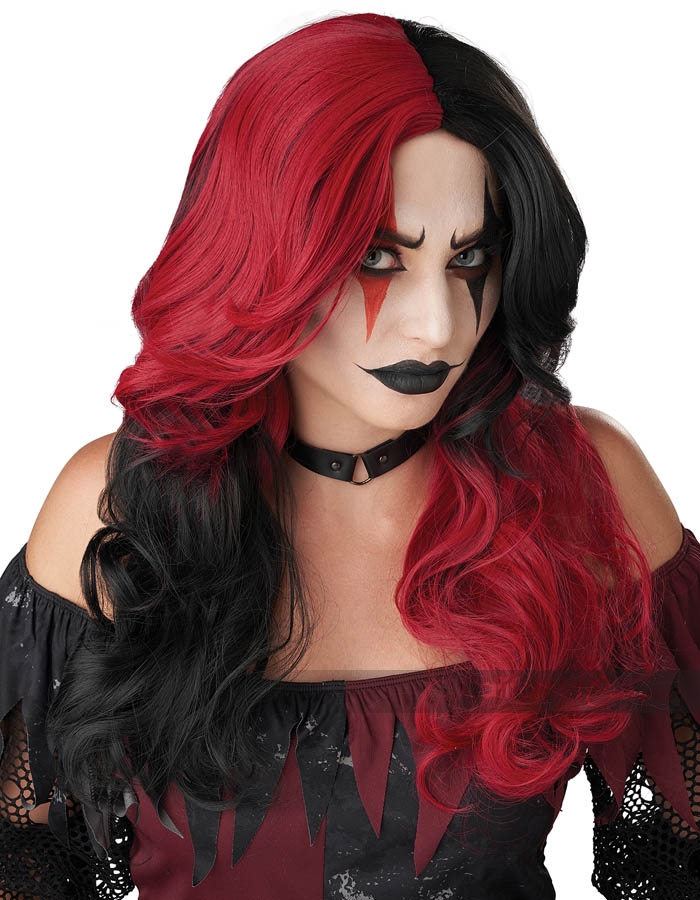This wavy wig is a black and red colourway.