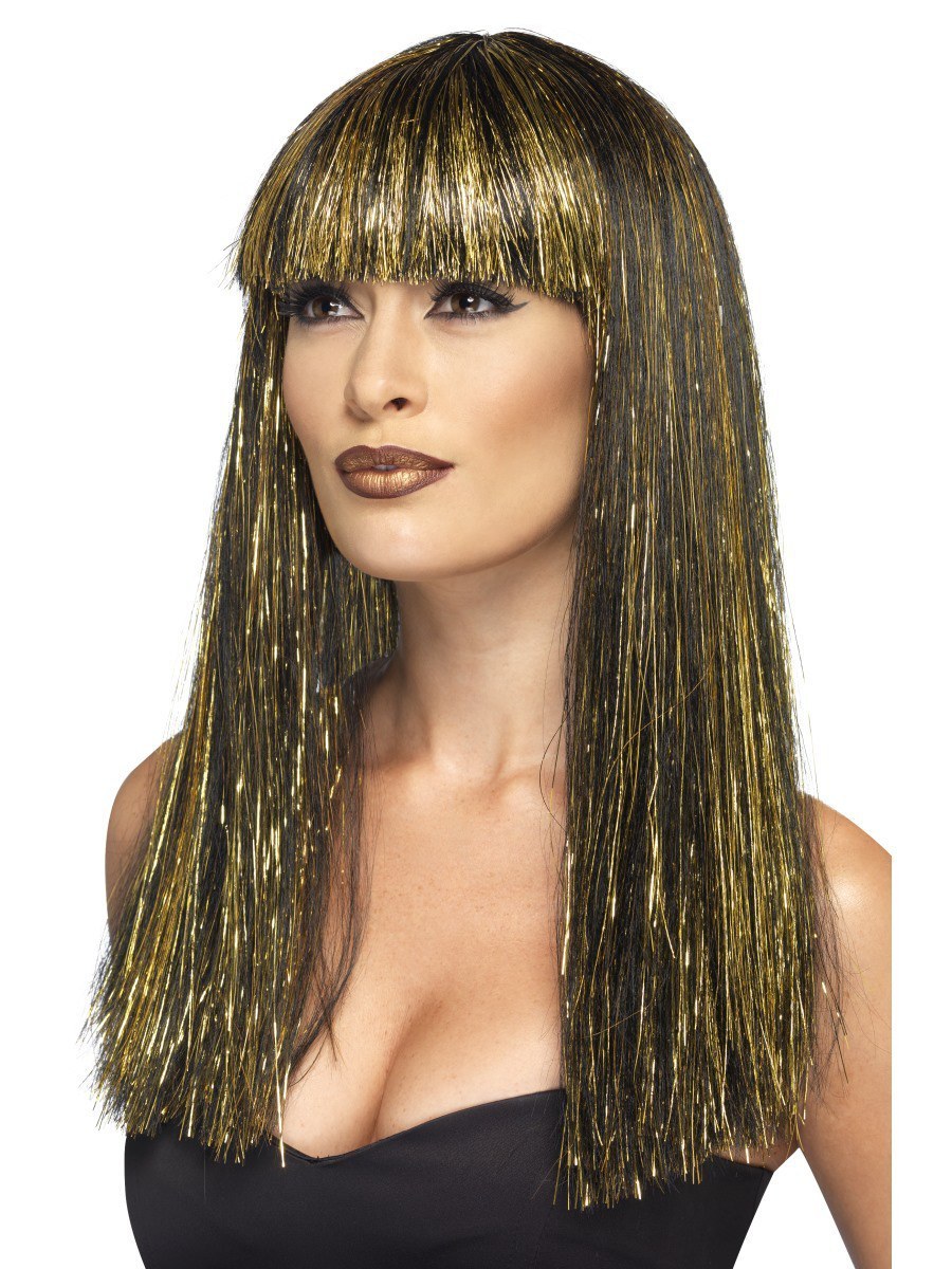 This Egyptian Goddess Wig, Black with Gold Tinsel is the perfect addition to any Egyptian inspired costume