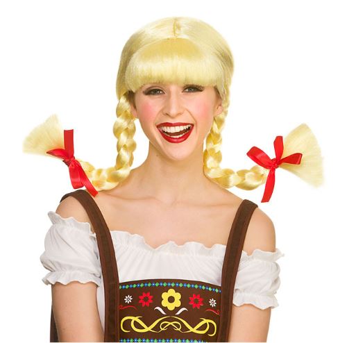 Bavarian Beer Girl Wig - wig with pigtails and red ribbons.