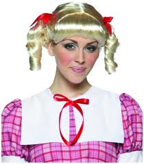 Our officially licensed Cindy Wig from the Brady Bunch is a blonde wig with cute little pigtails with ribbons and a fringe.