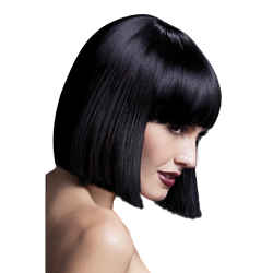 Deluxe Fever Lola 12" Heat Resistant Wig in black with Short Blunt Cut & Fringe, Skin Parting and Fully Adjustable Professional Wig Cap.