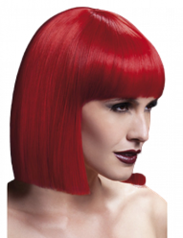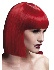 Deluxe Fever Lola 12" Heat Resistant Wig in Red with Short Blunt Cut & Fringe, Skin Parting and Fully Adjustable Professional Wig Cap.