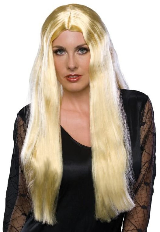 Transform your look with our Deluxe Quality Long Blonde Witch Wig 24". This adult size wig is made from polyester material and is washable. Wig Caps are suggested to use for ease of wear and hair care and can be purchased separately on our website for all your costume needs.