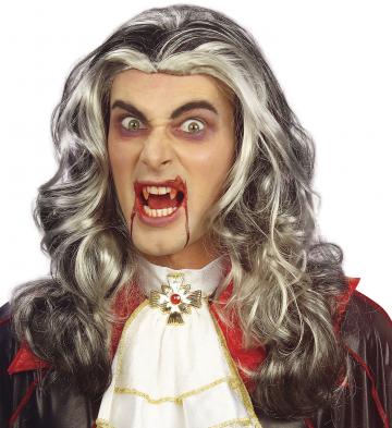 Accessorize your vampire costume this year with this long black and grey vampire wig.