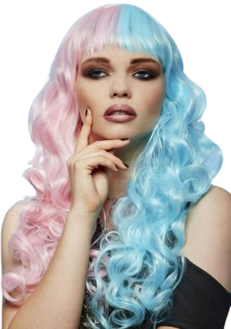 Stand out from the crowd with this fun and realistic looking Manic Panic Cotton Candy Angel Wig. This is a professional lightweight synthetic wig which is styled with wavy curls and bangs in a pastel light pink & blue split dye style! It also features a fully adjustable wig cap for secure fit and comfort.