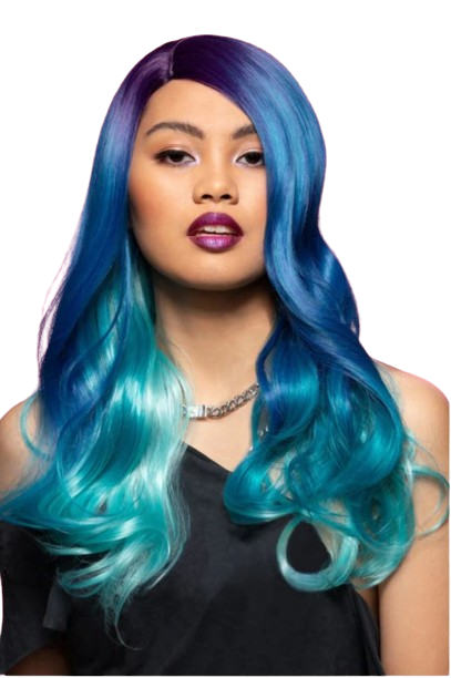 Stand out from the crowd with this fun and realistic looking Manic Panic Mermaid Queen Wig. This is a professional lightweight synthetic wig which is styled with wavy curls, purple and blue ombre style! It also features a fully adjustable wig cap for secure fit and comfort.