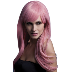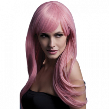Deluxe Sienna wig in pretty pastel pink colour with straight fringe and faux parting.