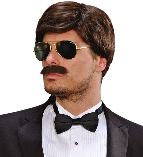 Our Playboy brown Wig & Moustache looks and feels like real hair. This wig is a high quality professional synthetic wig and is styleable and washable.