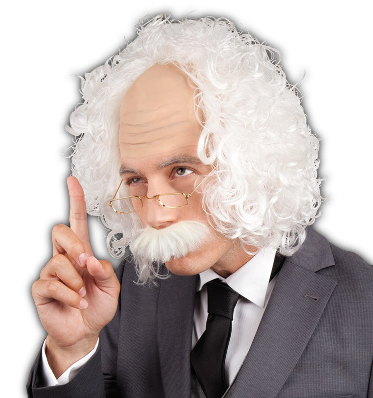Professor Wig with Moustache & Glasses includes white, curly wig, white bushy moustache and also professor glasses with golden frame.
