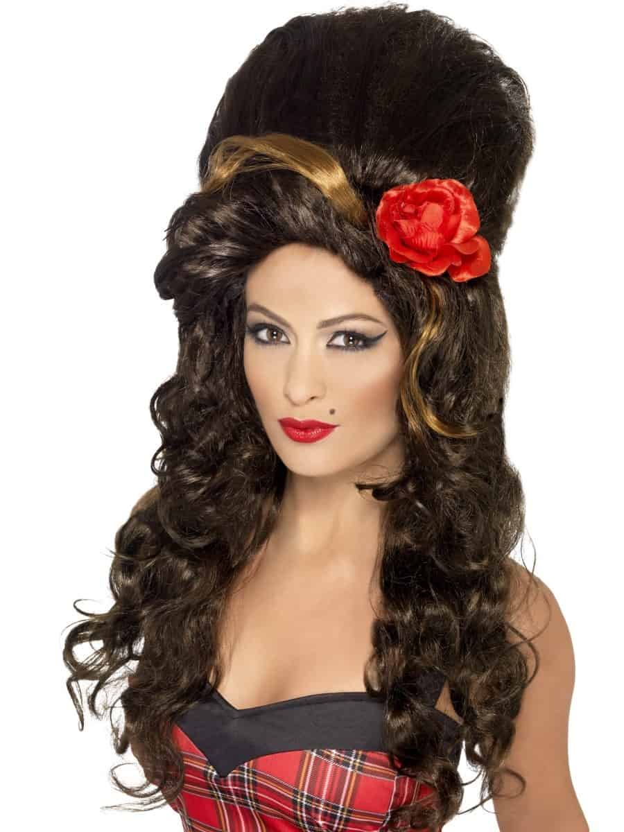 Long brown rehab wig with large beehive, Like that of Amy Winehouse