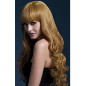 Deluxe Long wavy Sienna auburn wig with straight fringe and faux parting.