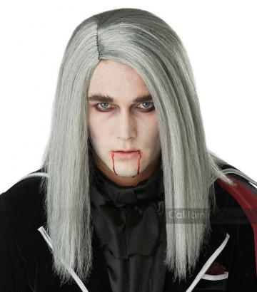 Under a moonlit night, the Sleek Vampire is a long gray wig with a side part.