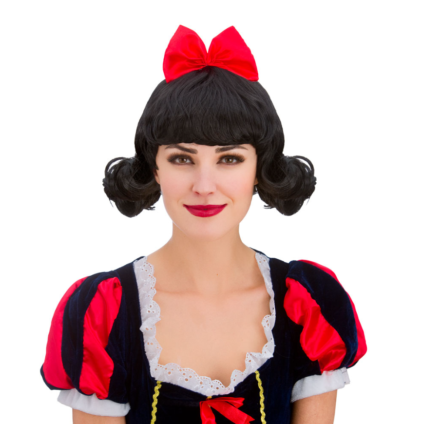 The perfect accessory to complete your princess fancy dress. Our adults Snow Princess Wig is a black wig with a red ribbon attached.
