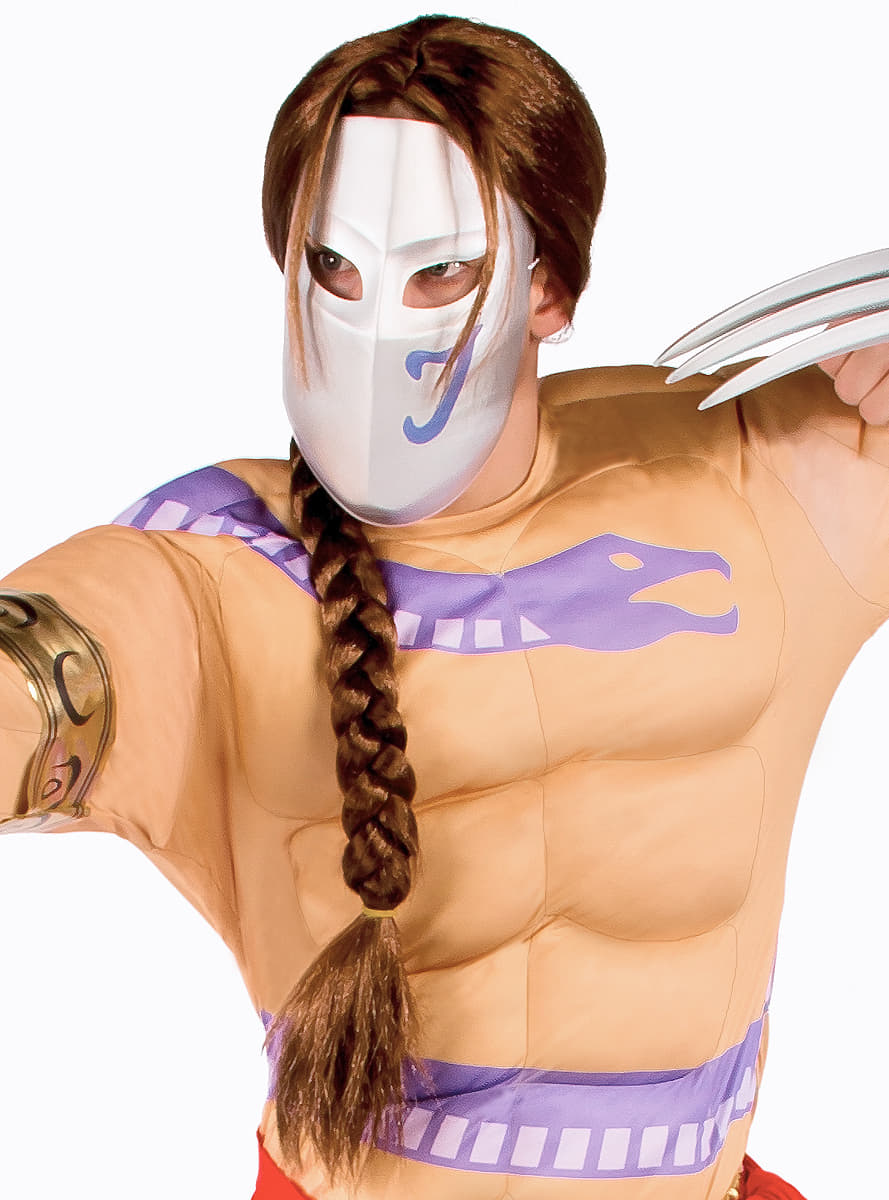 Street Fighter Vega wig - Brown wig with plaited pony tail.