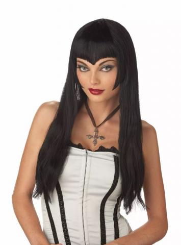 Transform into a blood hungry monster with our ladies black Vampiress Wig.